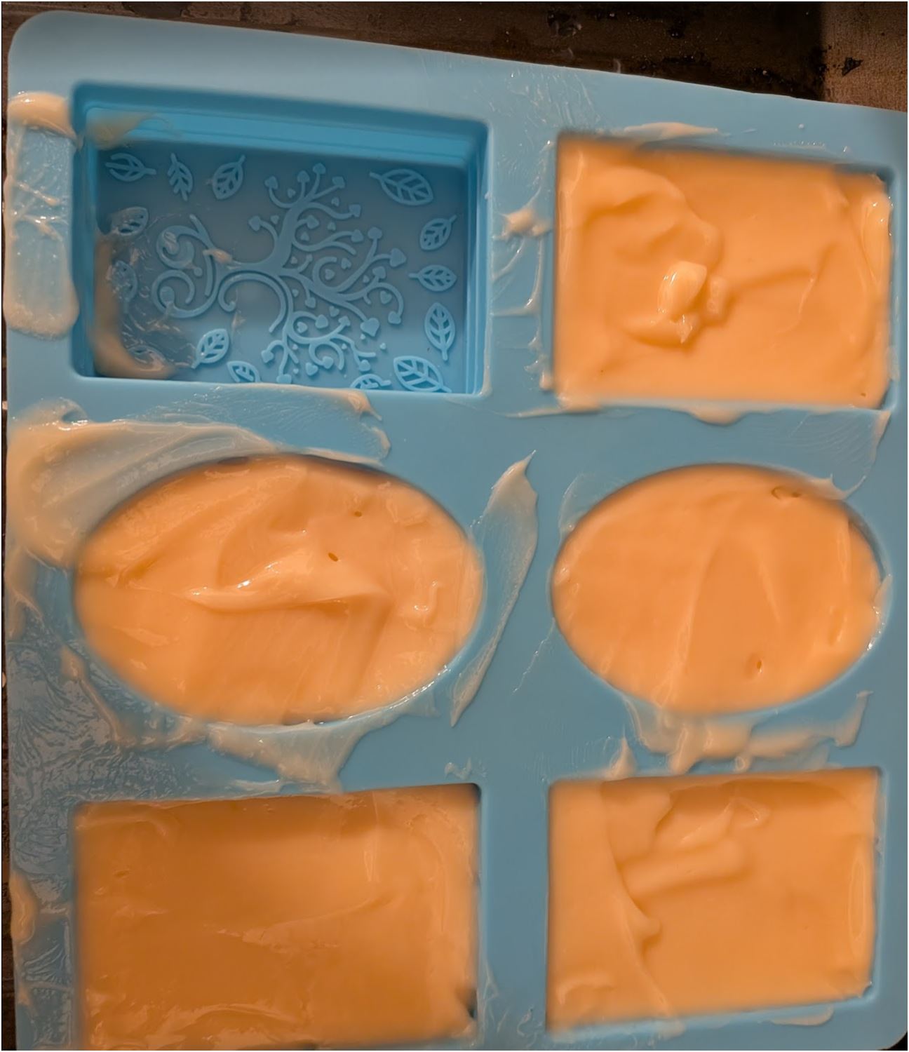 Cure time for these will be 4-6 weeks from this date will be begining to Mid March 2026. I'll be sending these to family to try them out and see what they think about adding the beeswax, so I added the teeniest bit of orange mica colour so they can easily tell the difference between the two