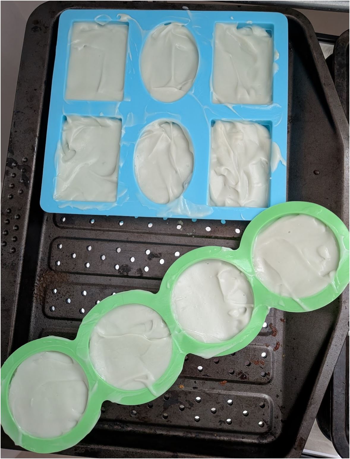 I swapped out water for frozen goat's milk. Unfortunately, I didn't realise I had crossed the 60% olive oil threshold so this will take 3 months to cure; 16th of June 2026