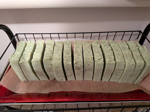 5. Luxury Pumpkin Seed oil, Peanut Oil, Burren Beeswax soap (Green & Brown) double batch 16/11/2025