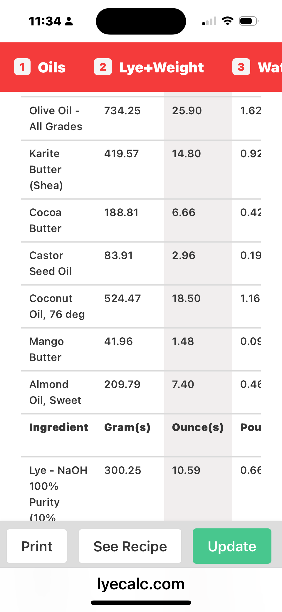 | Extra Lye to Neutralize Lactic Acid for L.A. | NaOH: 0.33 Ounce(s) | ||||||
